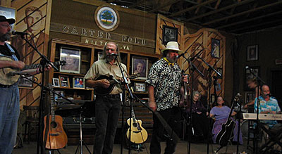 | Anne Berry snapped Bill Hicks and Daryl Jayne in front of Johnny and June. Daryl does a fine job with the sound at the Fold. | ||